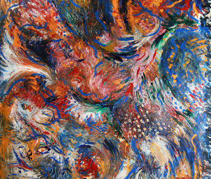 Our act of painting is a subjective and expressive one, not objective. No complete “thing” is the object of our gaze while immersed in the process of painting, only the rising and falling moments of beauty that show themselves in the visible space of our immediate doing - In the purest sense, what our paintings “mean” is exactly equivalent to what they are. If we could tell you what they “mean” in words, we would have told you something in words, but as there were no words to convey this meaning, so we opted to paint the painting, as in the same moment the painting painted us - After the painting process is complete, we allow ourselves to see what is there (not in the painting but within our minds) allowing the mythological and archetypal representations to come forward in fantasy - We then enjoy the telling and sharing of these painted stories as teaching and healing tales- The best patterns (compositions) do not reinforce what we were looking for but create opportunities for the existence of new novel and more beautifully intimate and relational patterns to emerge.